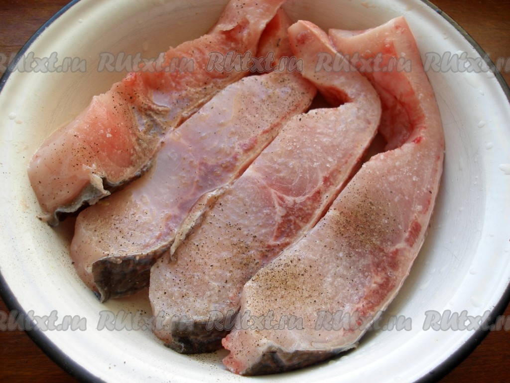 Рыбу вымыть, очистить, нарезать на порционные куски.