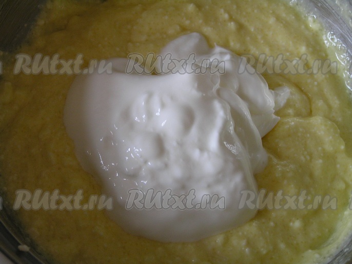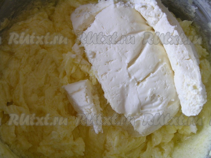 Добавить сметану, перемешать творожно-сметанную заливку.