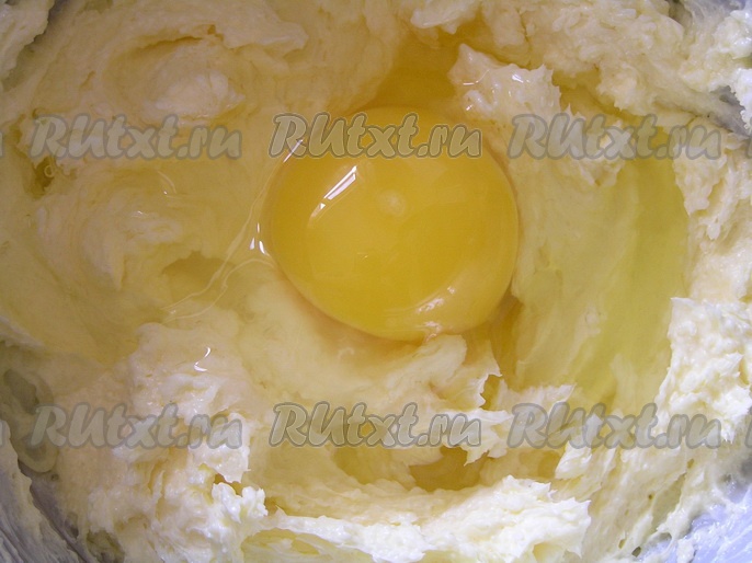 Вначале замесим тесто, для этого сливочное масло комнатной температуры нужно растереть с сахаром, добавить яйцо, перемешать.