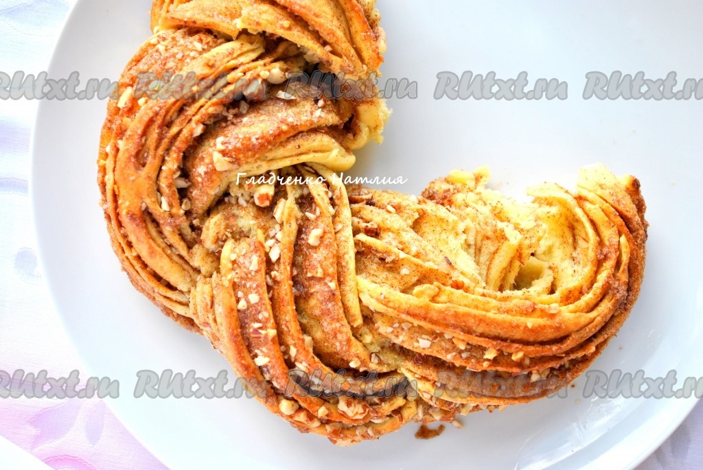 Подавать очень вкусную плетенку с корицей и орехами теплой или горячей!