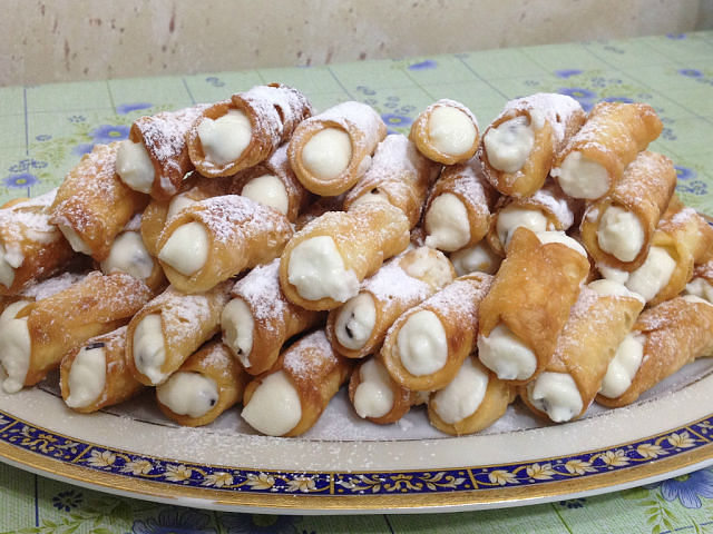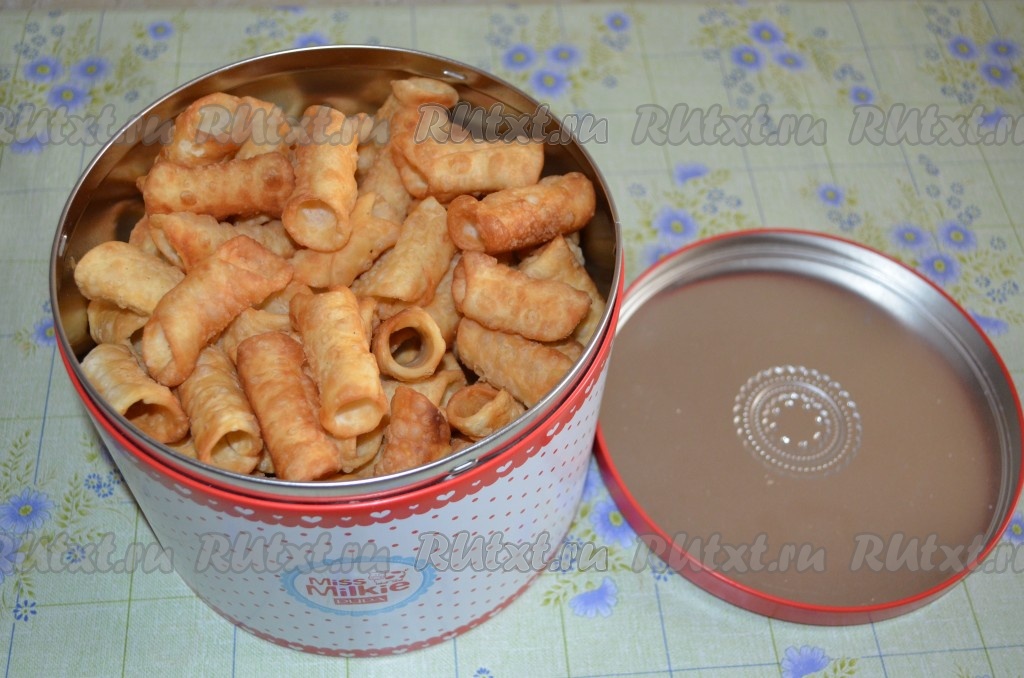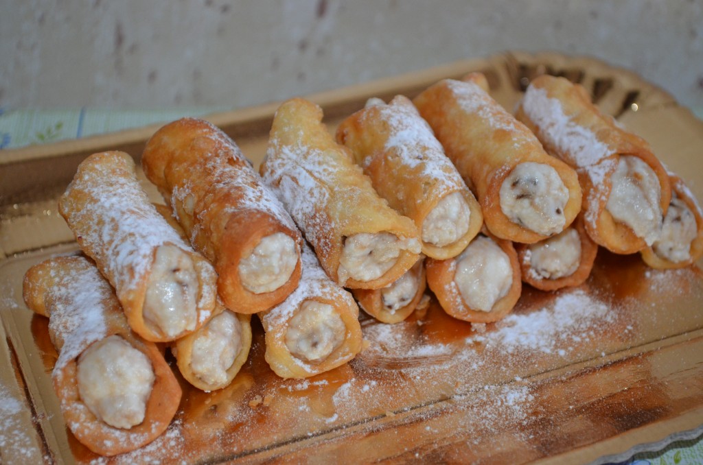 Готовые канноли можно сложить в герметичную посуду и хранить около месяца, начиняя кремом по мере надобности.