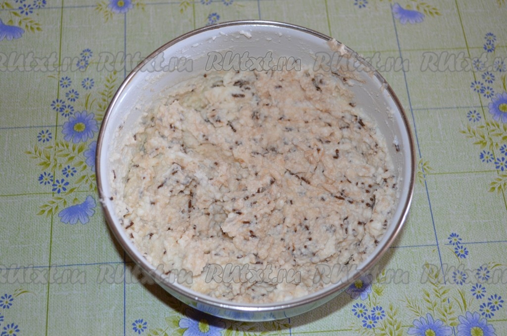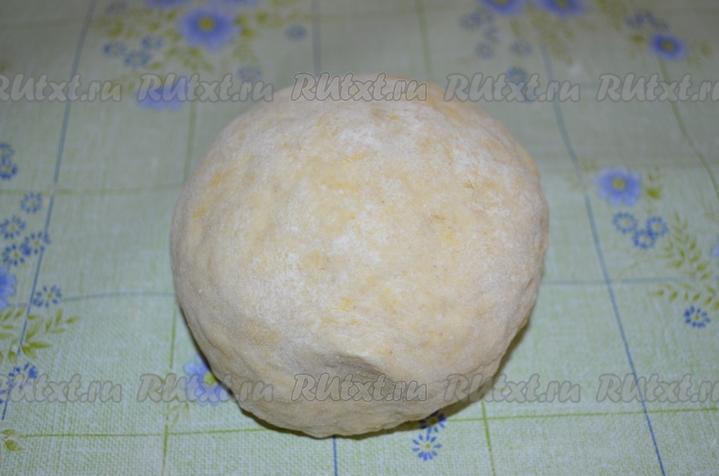 Смешиваем все ингредиенты для теста и замешиваем, подливая вина так, чтобы тесто получилось, как на пельмени или вареники.