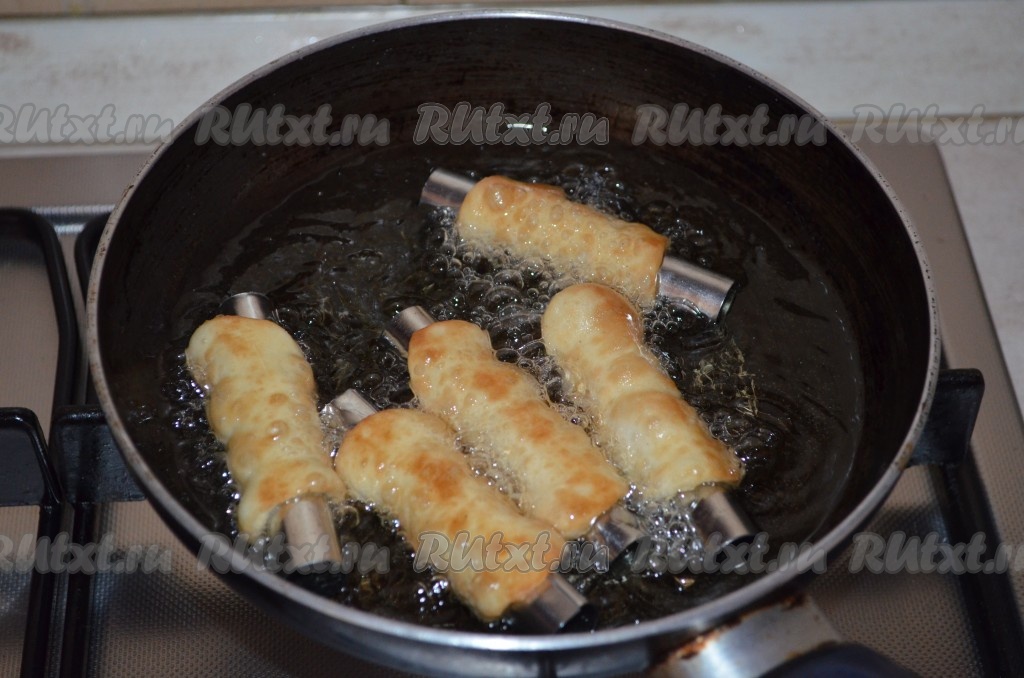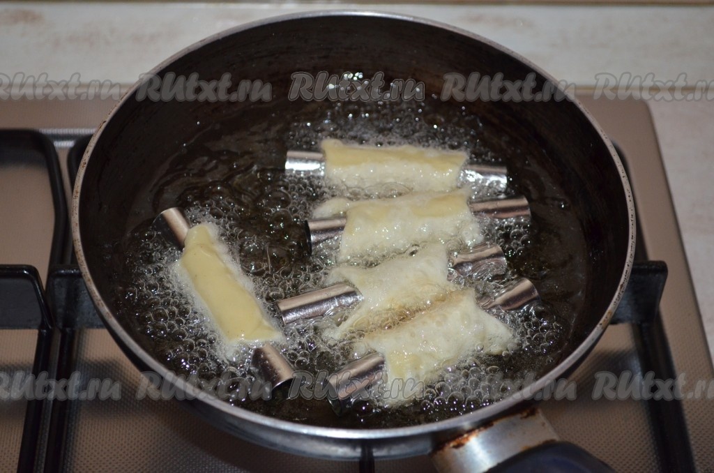 Обжариваем канноли в хорошо разогретом подсолнечном масле.