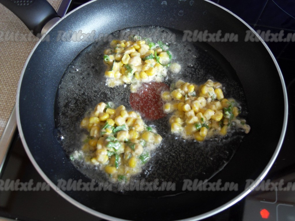 Жарить кукурузные лепешки на растительном масле до румяной корочки.