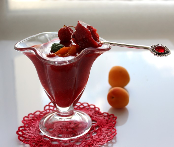 Разлить клубничное желе с абрикосами по формочкам и убрать в холодильник на 2-3 часа.