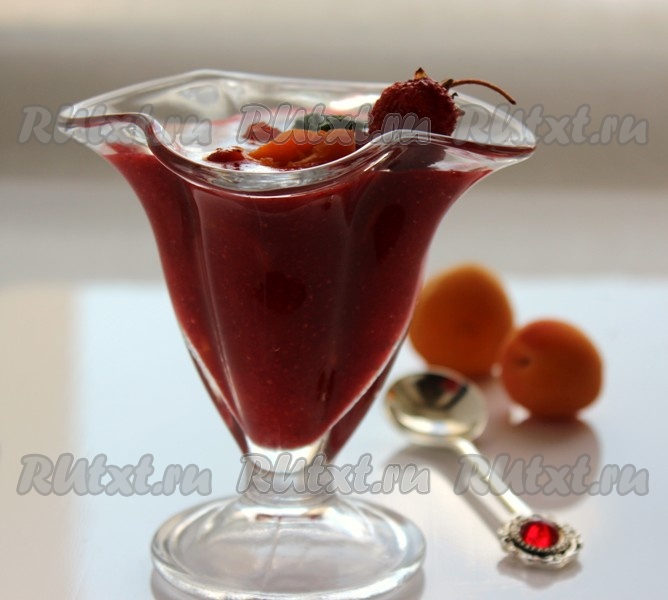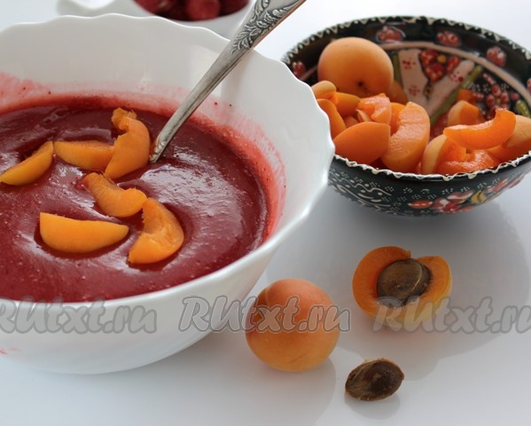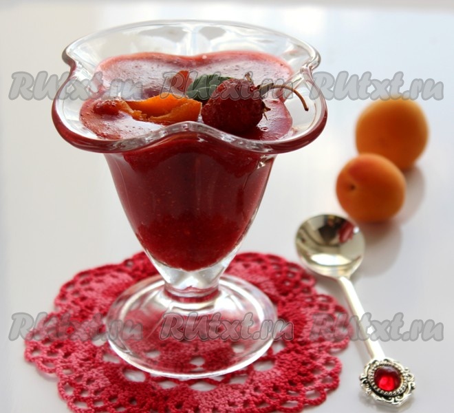 Когда клубничная масса немного загустеет, добавить абрикосы, перемешать.