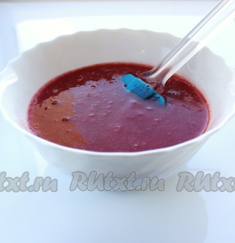 Теплую клубничную смесь с желатином перелить к основной клубничной массе, хорошо перемешать. Убрать смесь клубничного пюре и желатина в холодильник до легкого загустения.