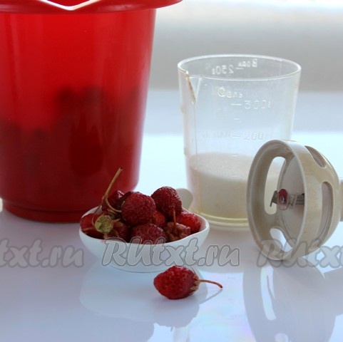 Ягоды вымыть, перебрать, добавить сахар и взбить блендером до пюре.