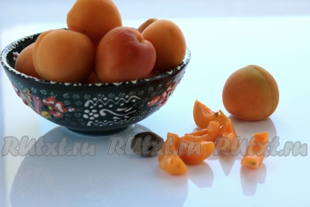 Абрикосы вымыть, обсушить и нарезать, они очень гармонично дополнят этот десерт из клубники. Но если нет абрикосов в наличии, можно обойтись и без них или попробовать заменить на другие фрукты.