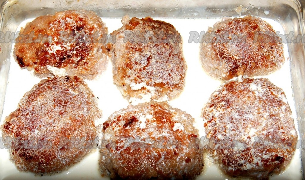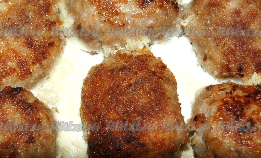 Обжаренные котлеты для детей переложить в огнеупорную форму и залить сливками, оставшимися от замачивания белого хлеба и отправить форму в заранее нагретую до 200 градусов духовку на 25 минут.