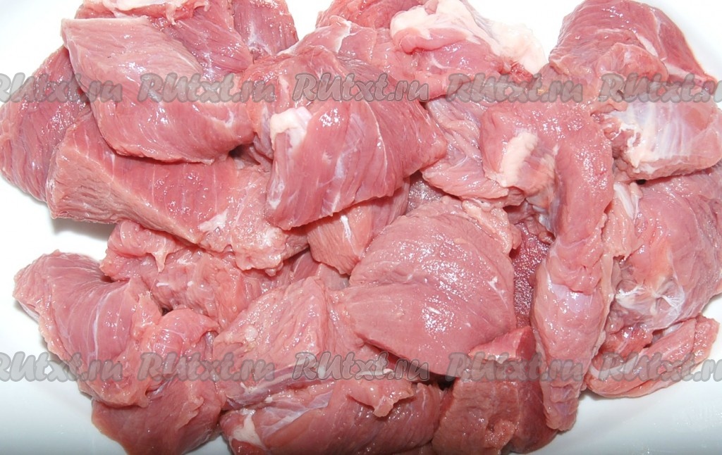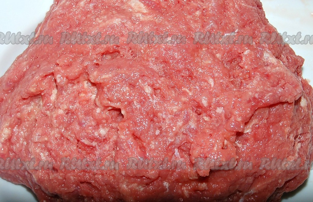 Мясо (говядину или телятину) нарезать небольшими кусочками и прокрутить через мясорубку.