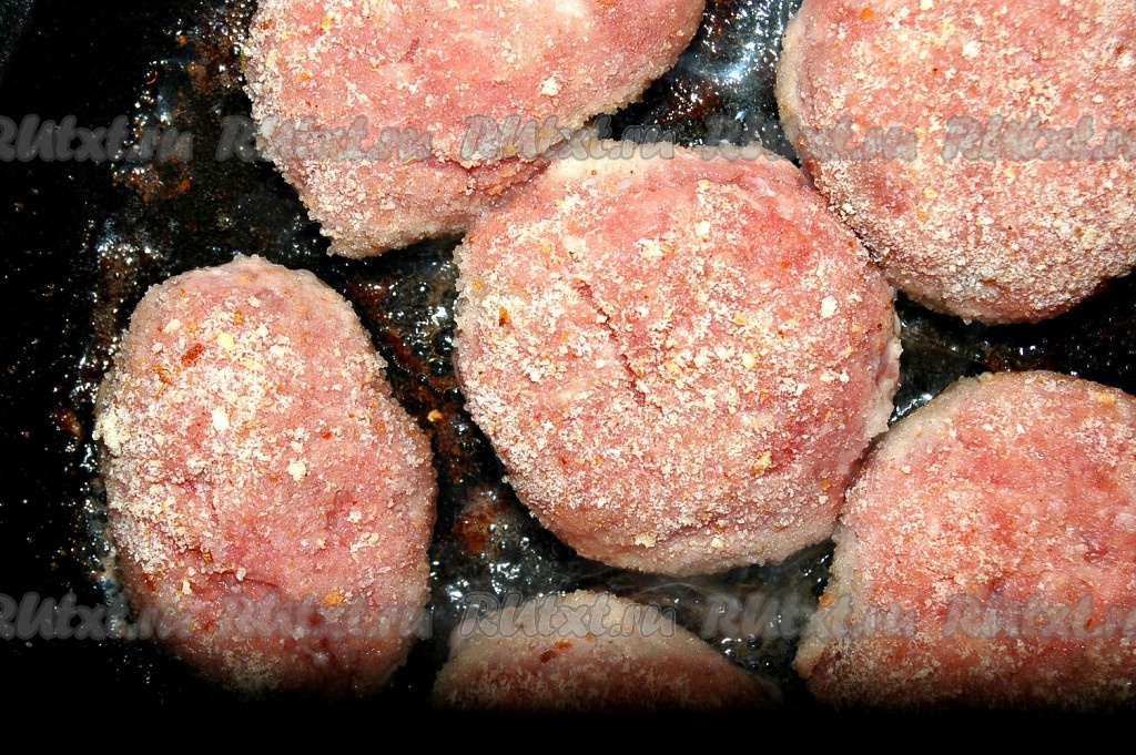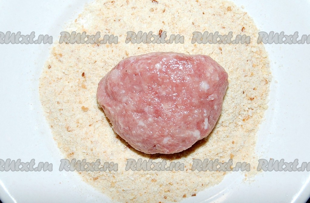 Сформировать котлеты и обвалять их в панировочных сухарях. Сухари можно сделать самим, для этого нужно взять белый хлеб (лучше черствый) и натереть его на терке.
