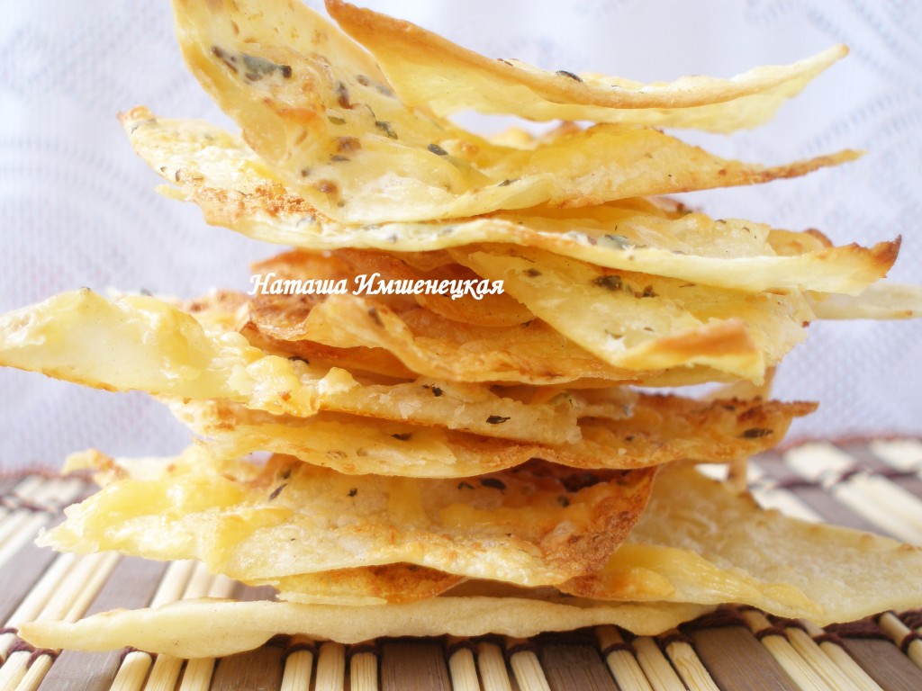 Готовые чипсы аккуратно снять с противня, переложить на решетку, остудить.