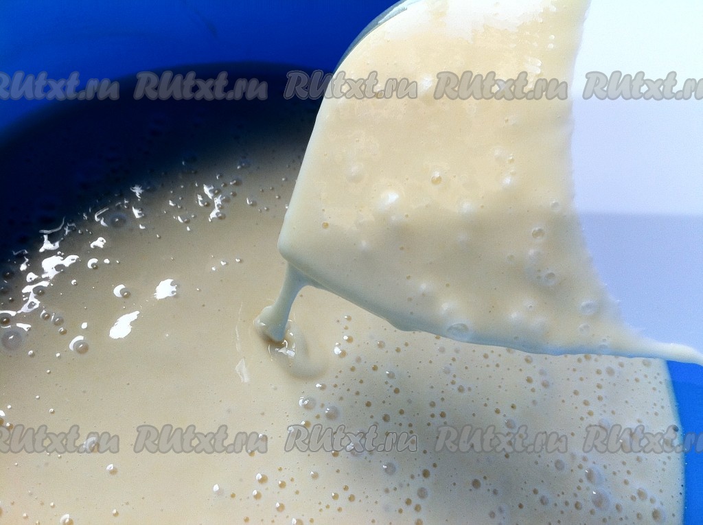 С помощью миксера (насадка венчики) перемешать на минимальной скорости. Затем взбивать на максимальной скорости не менее 2-х минут.
