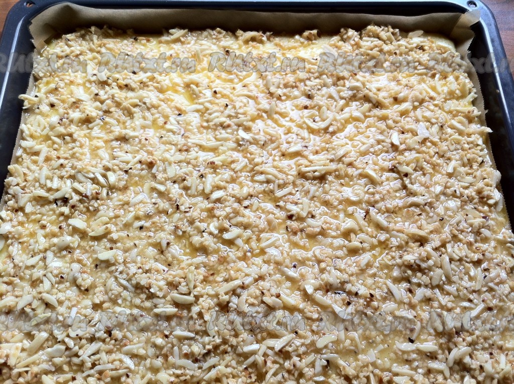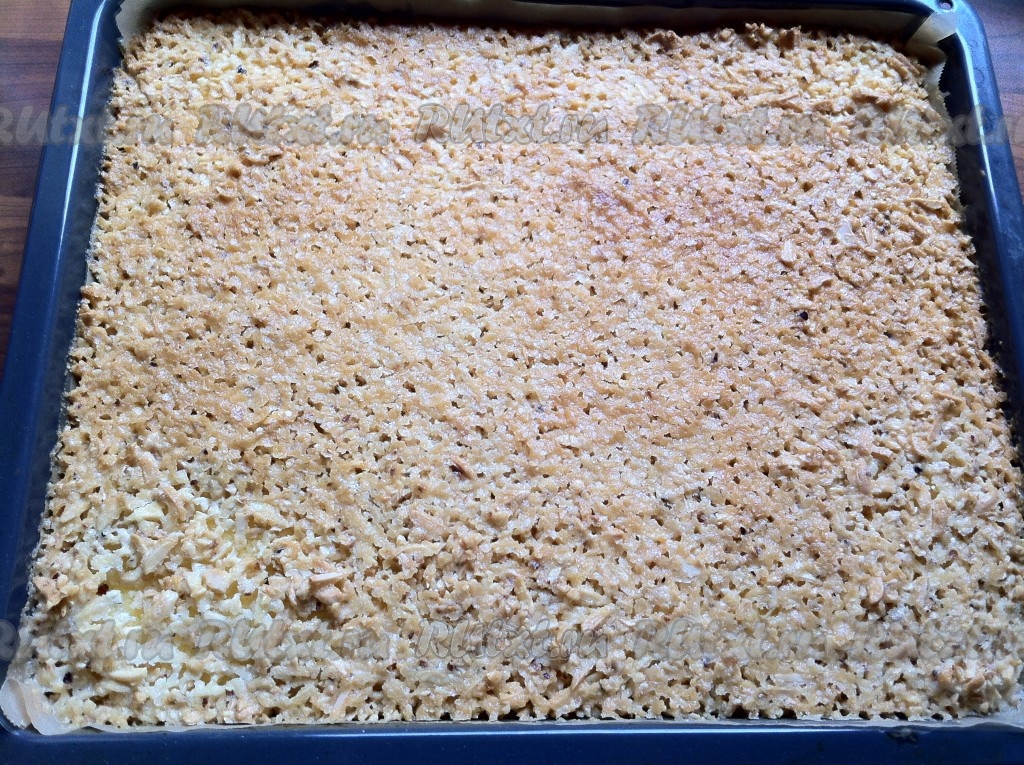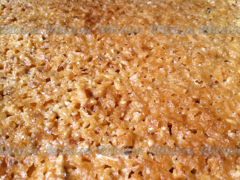 Отправить обратно в духовку на 15-20 минут. Ореховая масса станет золотисто-коричневой.