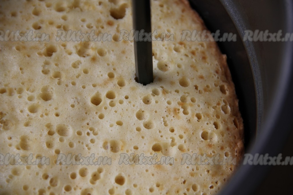 В остывшем кексе с помощью карандаша или ручки проделываем дырочки. Один совет, который хотела бы вам дать - дырочки проделывайте не очень близко друг к другу, чтобы внутри кекс получился не полностью пропитан нашим сиропом, а образовывались лишь влажные вкрапления внутри кекса.