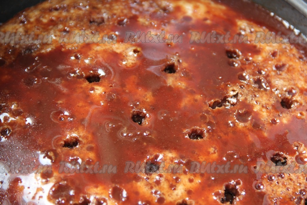 Даем сиропу остыть. Остывший сироп выливаем на остывший кекс в два захода. Половину заливки выливаем сразу, ждем пока она впитается в кекс, затем выливаем остальную часть.