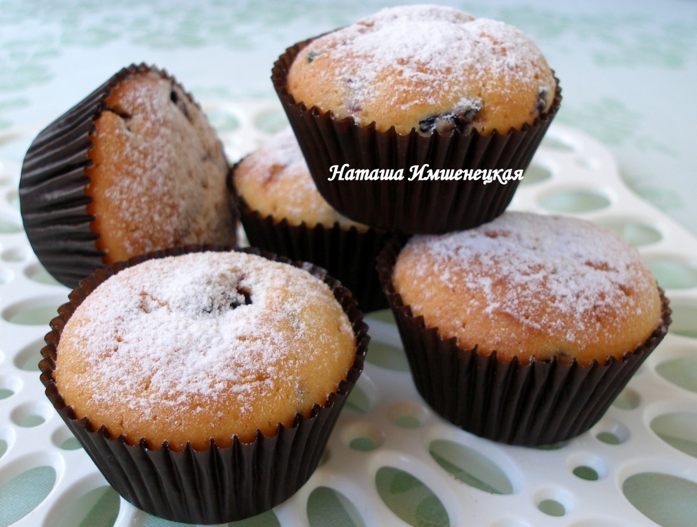 Готовые маффины вынуть из формы, присыпать сахарной пудрой.