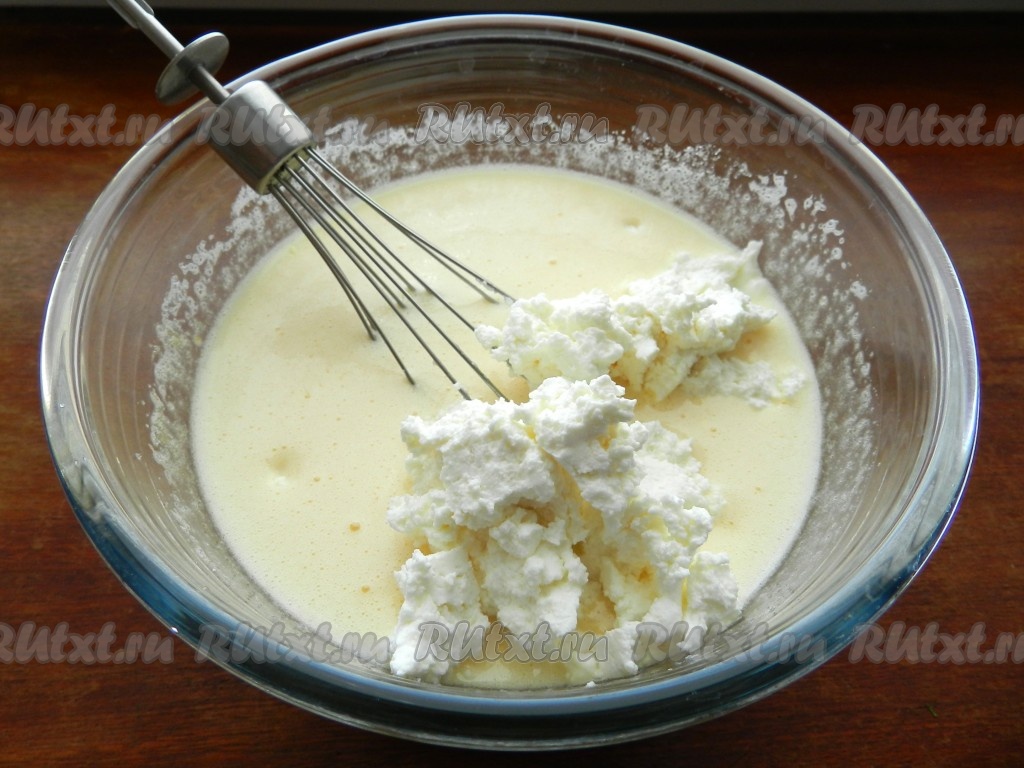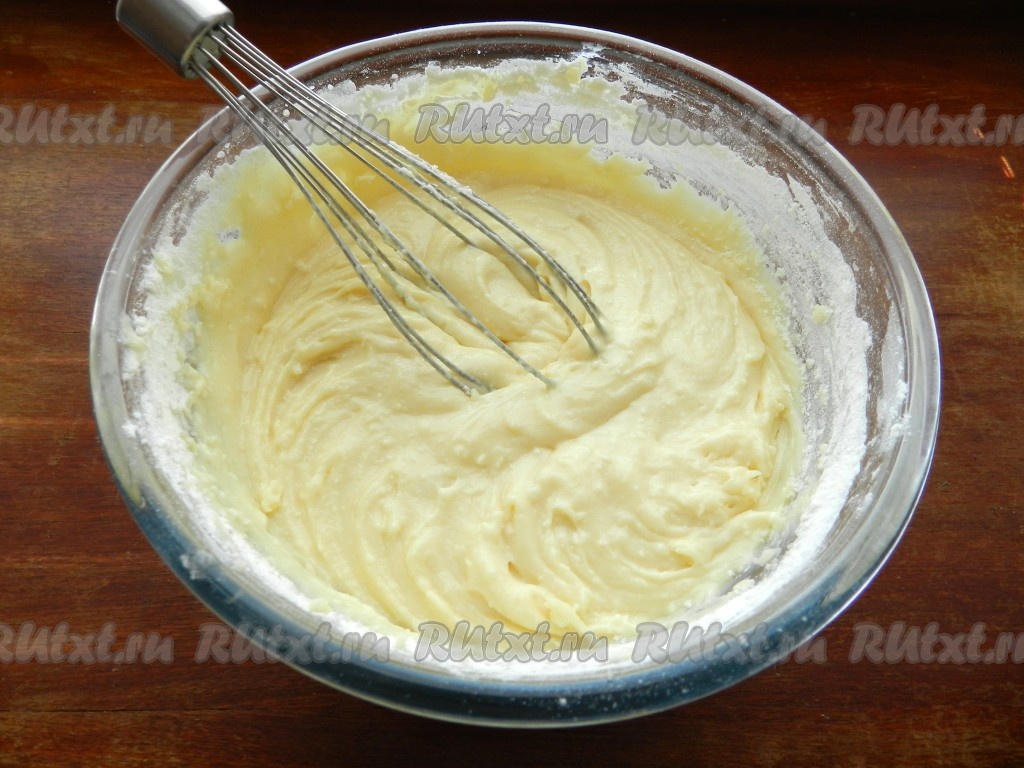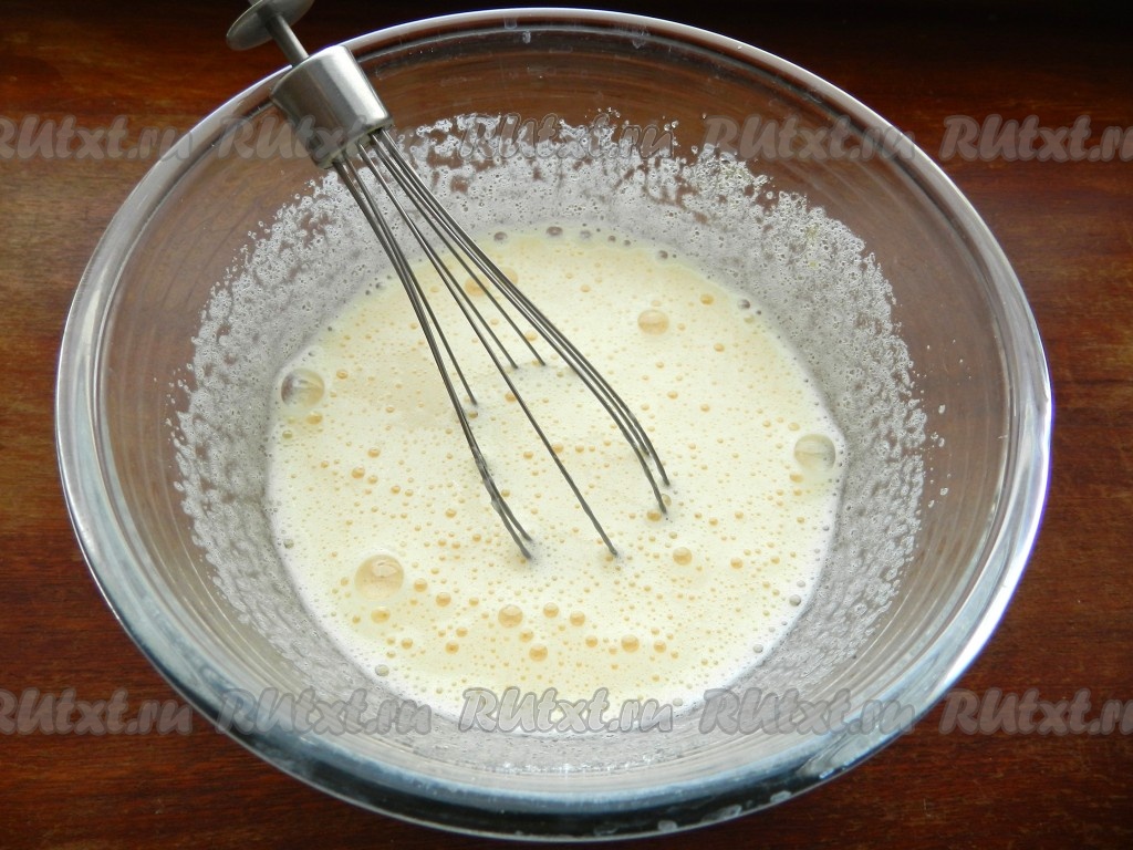 Сливочное масло растопить и остудить. Яйца взбить с сахаром, влить растопленное масло и взбить.