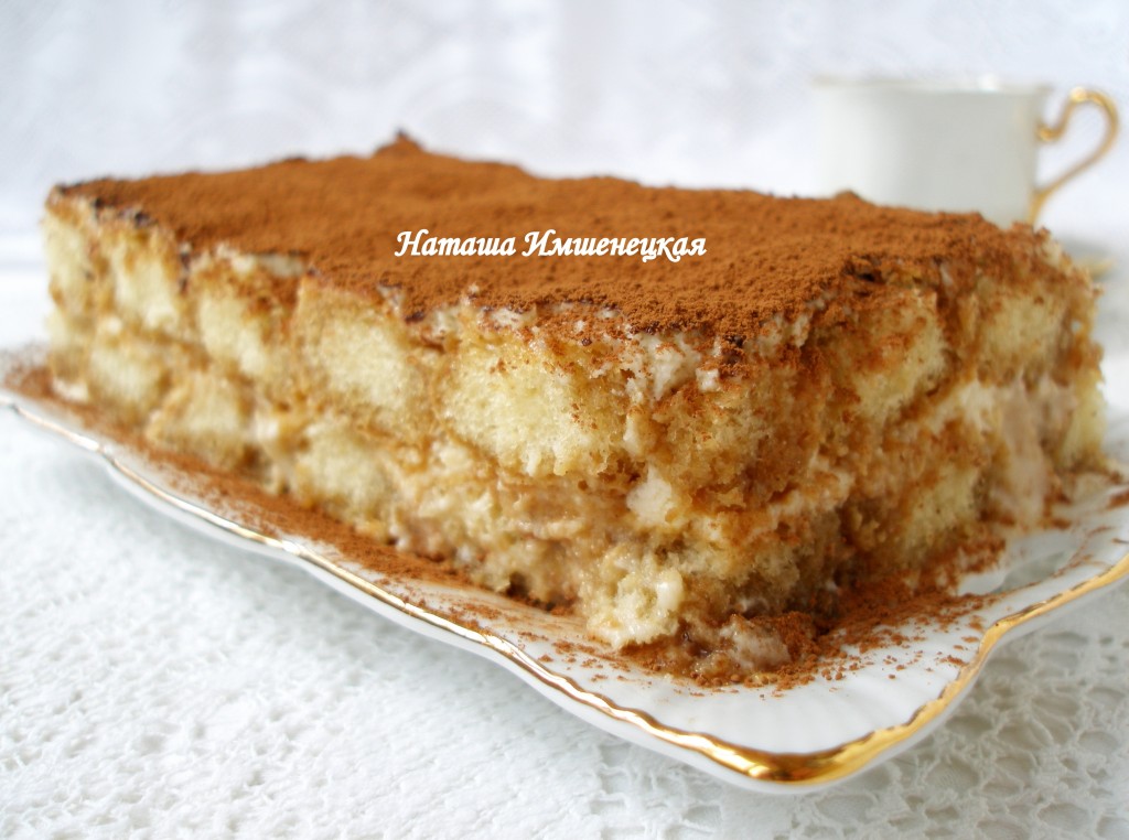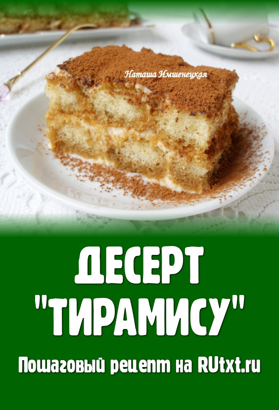 Нежнейший десерт "Тирамису" готов. Перед подачей поверхность тирамису можно посыпать еще одним слоем порошка какао.