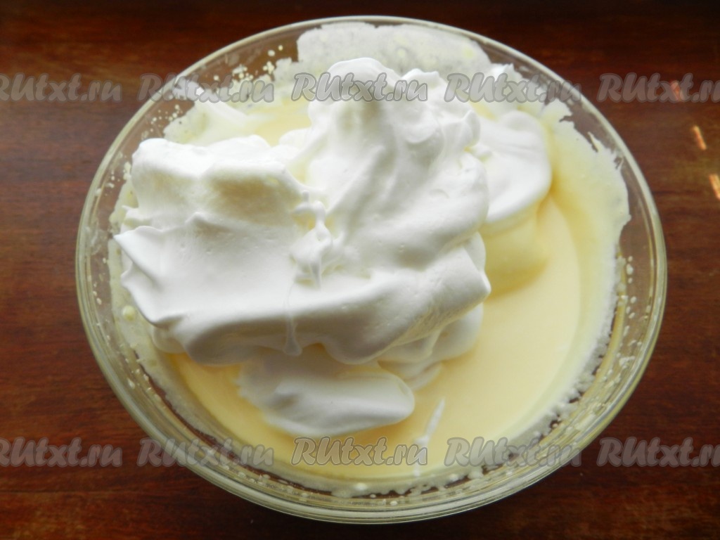 Аккуратно ввести взбитые белки в крем, перемешать.