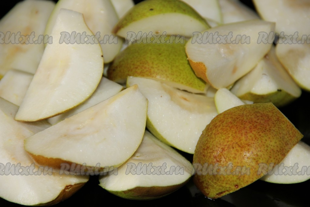 Груши помыть, разрезать на половики, вынуть косточки и убрать кончики.