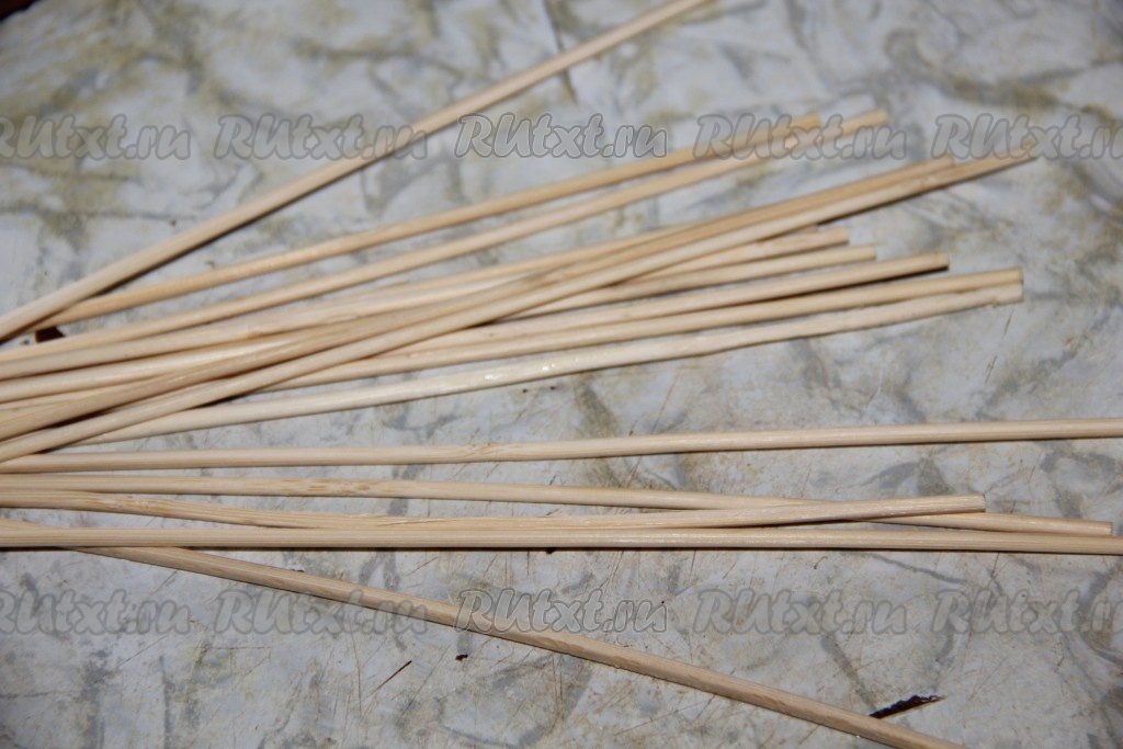 Из фарша формируем длинные колбаски и насаживаем их на шпажки.