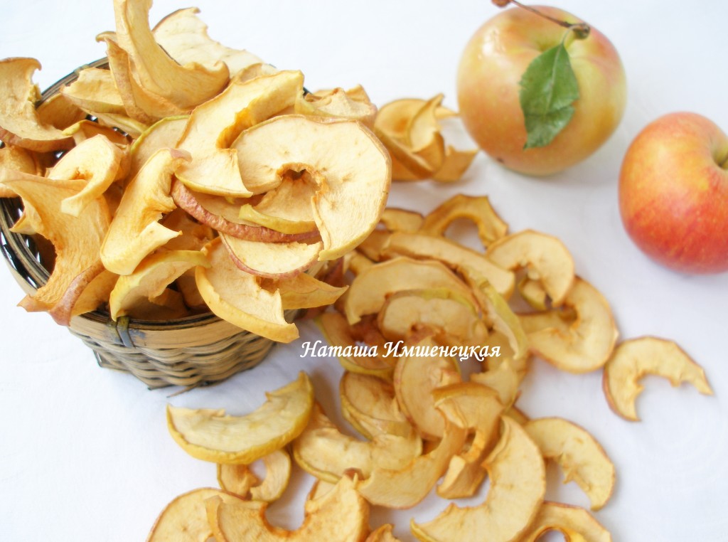 Яблоки будут готовы, когда при надавливании из них перестанет выделяться сок. Готовые яблоки из сушилки переложить в стеклянную банку или полотняный мешочек и убрать для хранения в сухое место.