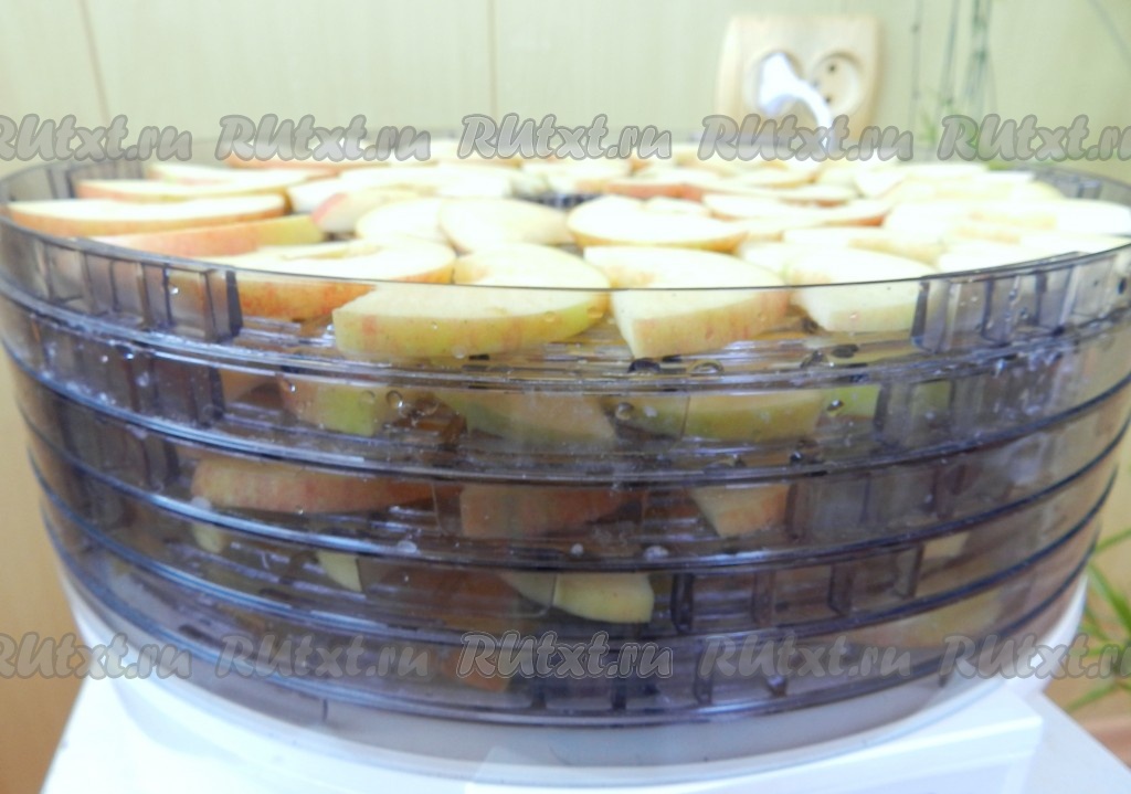 Нарезанные яблоки разложить по специальным секциям электросушилки.