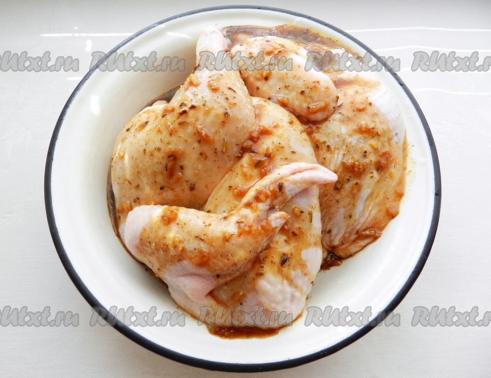 Маринадом обмазать курицу со всех сторон и оставить на 2 часа.