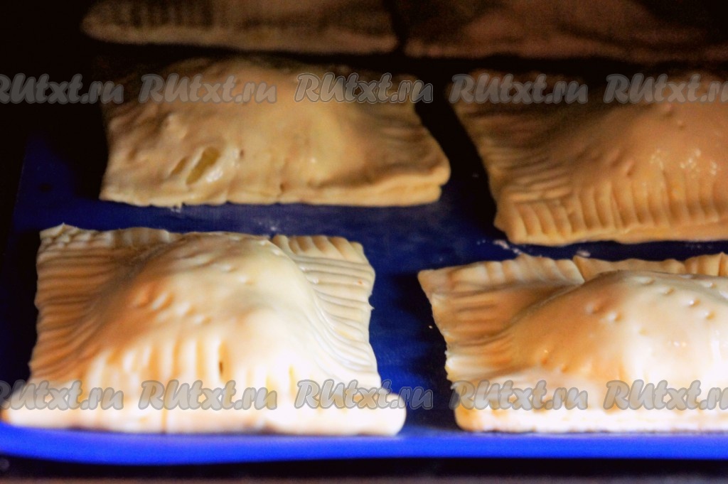 Выпекать около 30 минут до образования устойчивой и румяной корочки на пирожках.