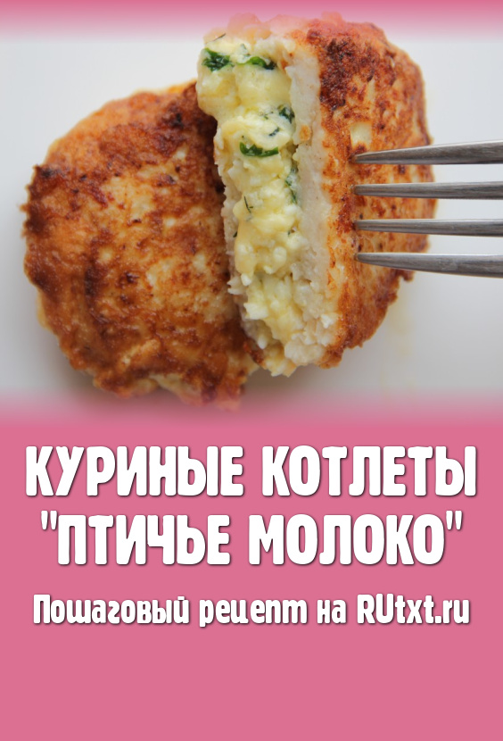 Жарить куриные котлеты "Птичье молоко" на огне чуть ниже среднего до готовности с двух сторон (примерно минут по 5 с каждой стороны). Учитывайте, что если огонь будет сильным, котлеты в кляре поджарятся снаружи, а внутри останутся сырыми. Аппетитные котлеты с нежнейшей сырно-яичной начинкой подать к столу. Эти вкусные, сочные куриные котлеты полностью оправдывают своё название!