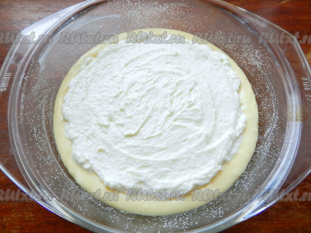 Творожную начинку выложить поверх теста, не доходя до краев.
