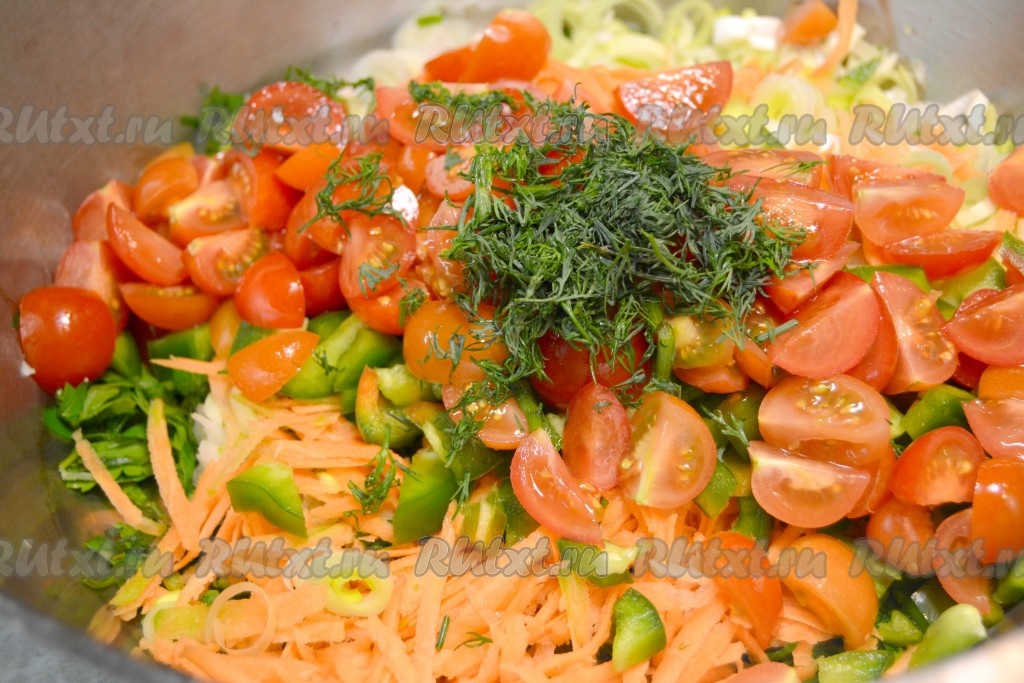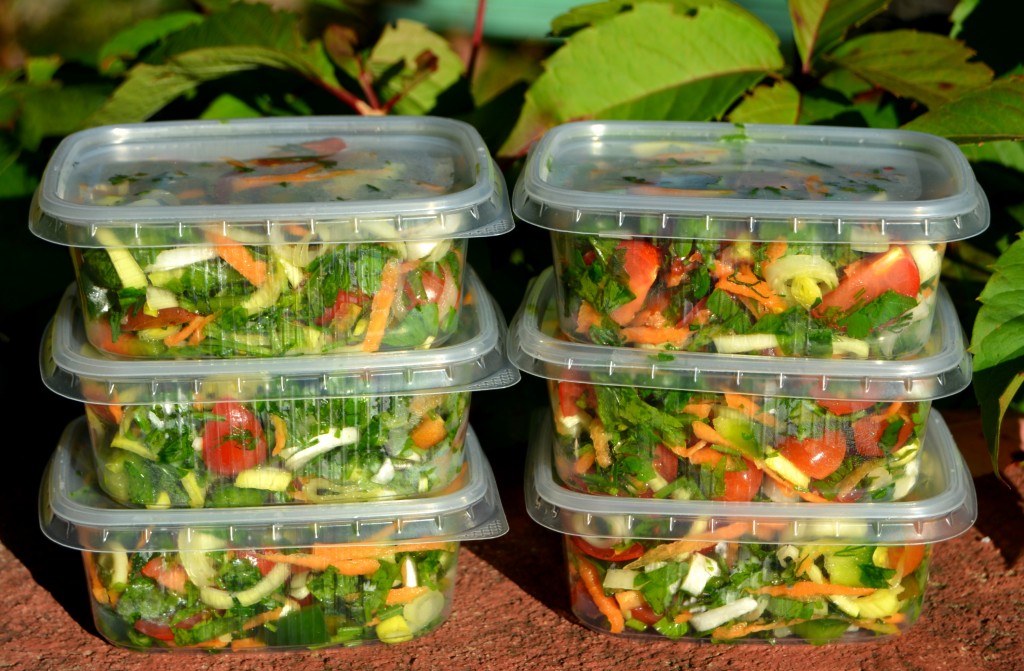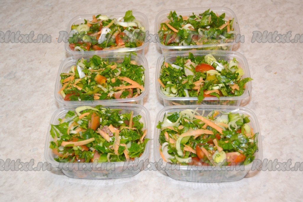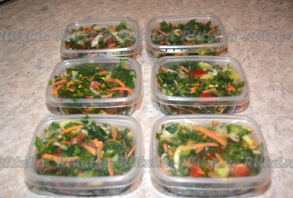 Раньше я такую овощную смесь солила и складывала в банки, а теперь я такую же смесь замораживаю. Овощная смесь, замороженная на зиму, мне нравится намного больше засоленной. Очень удобно для замораживания использовать контейнеры (одноразовую посуду), их можно подобрать по размеру (например, на 100 грамм, 200 грамм, 250 грамм и т.д.). Овощи берутся любые, в любом количестве, тут нет четких пропорций, на ваш вкус. Такую замороженную овощную смесь очень удобно использовать зимой при готовке. Обычно я беру содержимое одного контейнера и целиком его отправляю в кастрюлю.