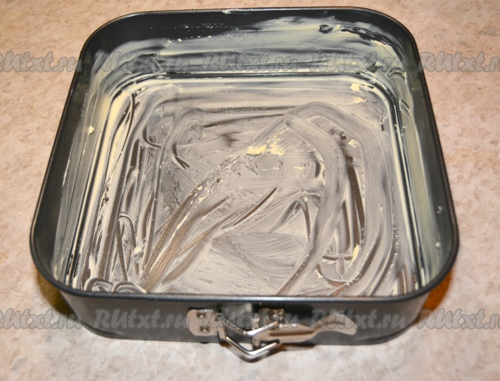 Форму для выпечки хорошо смазать сливочным маслом, чтобы готовый пирог можно было легко вытащить из формы.