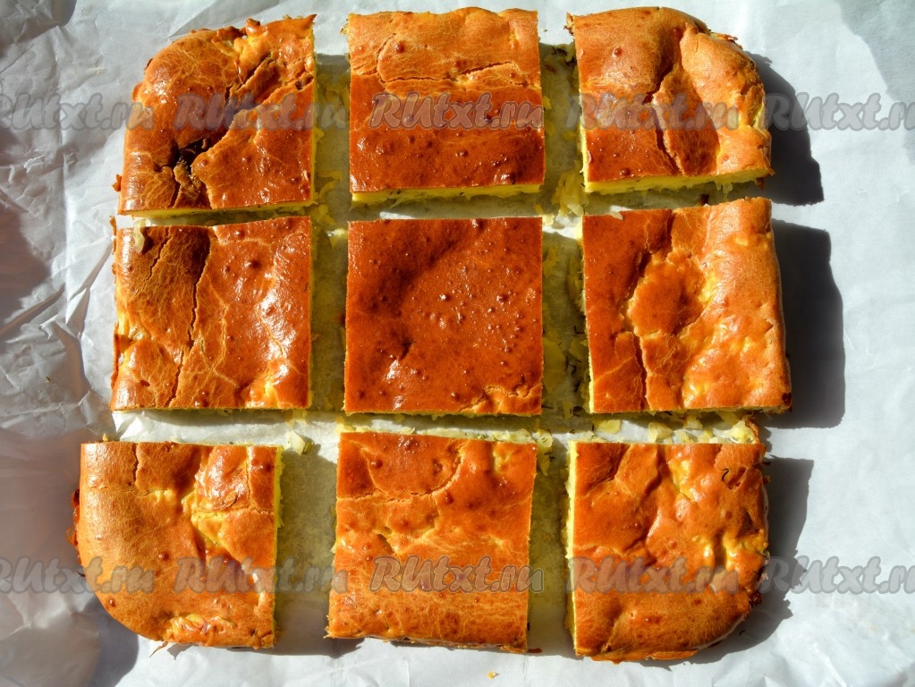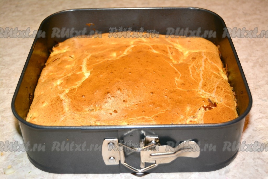 Достать выпечку из духовки, оставить остывать прямо в форме. Затем нарезать на порционные кусочки и подать на стол.