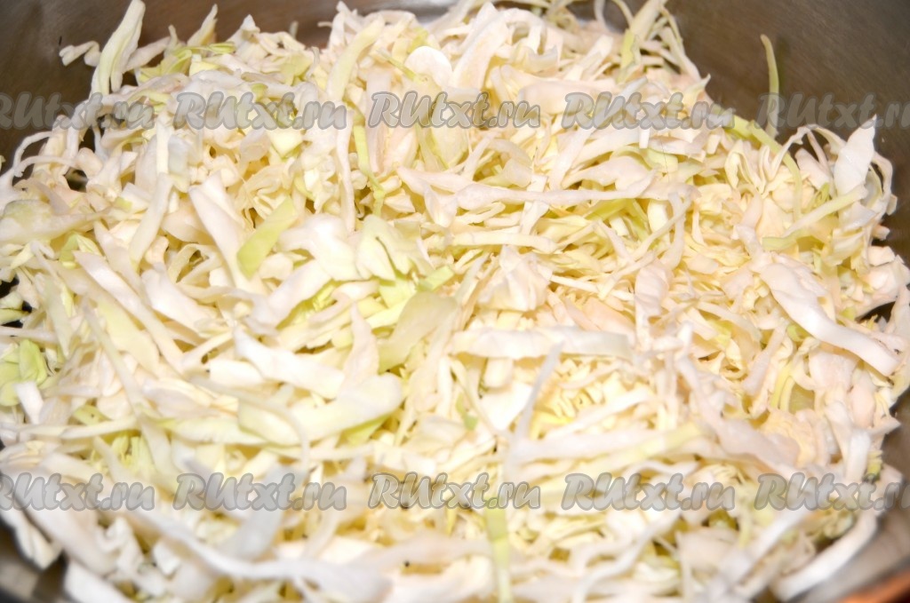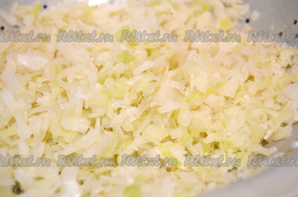 Если капуста совсем жёсткая (зимой), тогда после нарезания её можно опустить в кипящую воду и через 2-3 минуты вытащить, откинуть на дуршлаг и, когда остынет, отжать руками, чтобы ушла лишняя жидкость, затем посолить по вкусу.