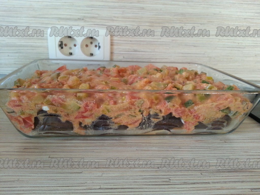 Наша вкусная овощная запеканка из баклажанов, кабачков и помидоров готова. Ее можно подавать как в горячем, так и в холодном виде.