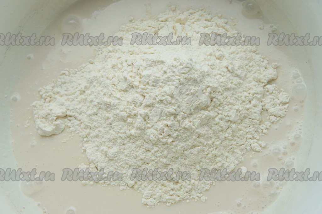 Муку просейте и добавьте небольшими частями к остальным ингредиентам.