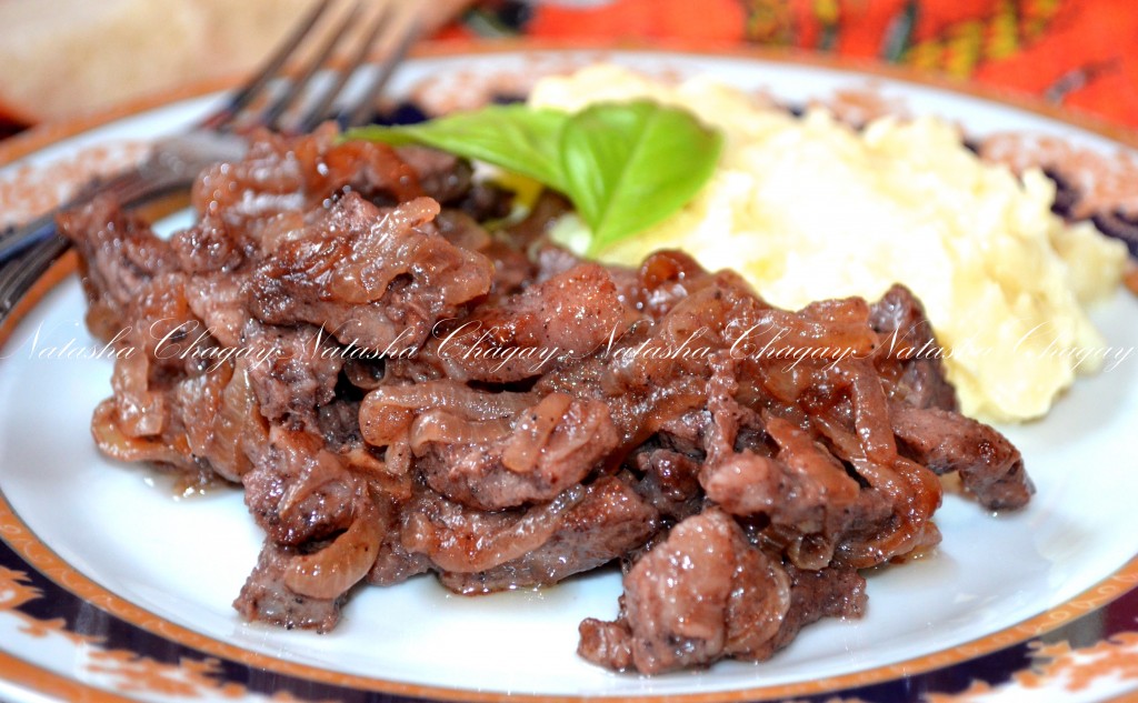 Никогда бы не подумала, что мясо, маринованное в соусе ткемали, а затем приготовленное на сковороде, окажется таким вкусным. Нежное, кисло-сладенькое, с жареным луком... Просто объедение!
