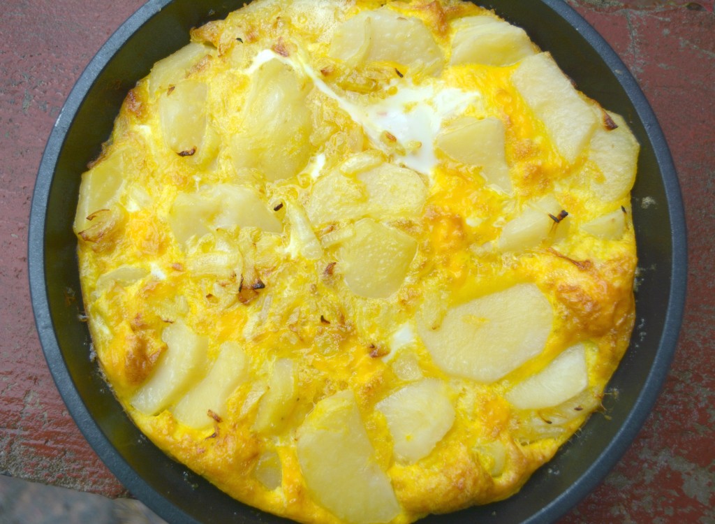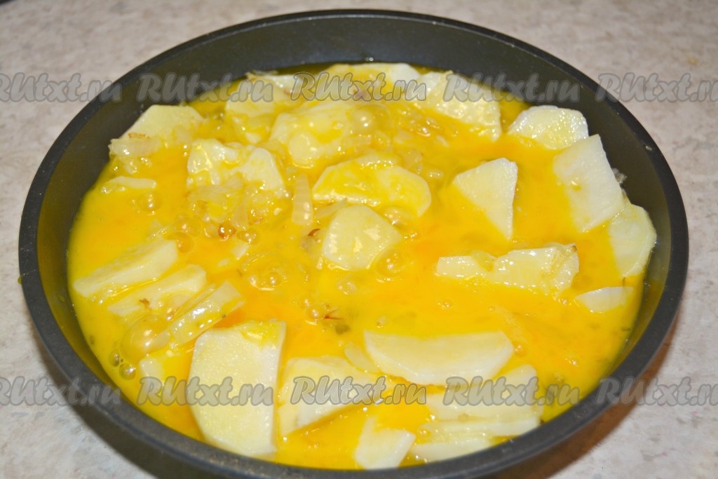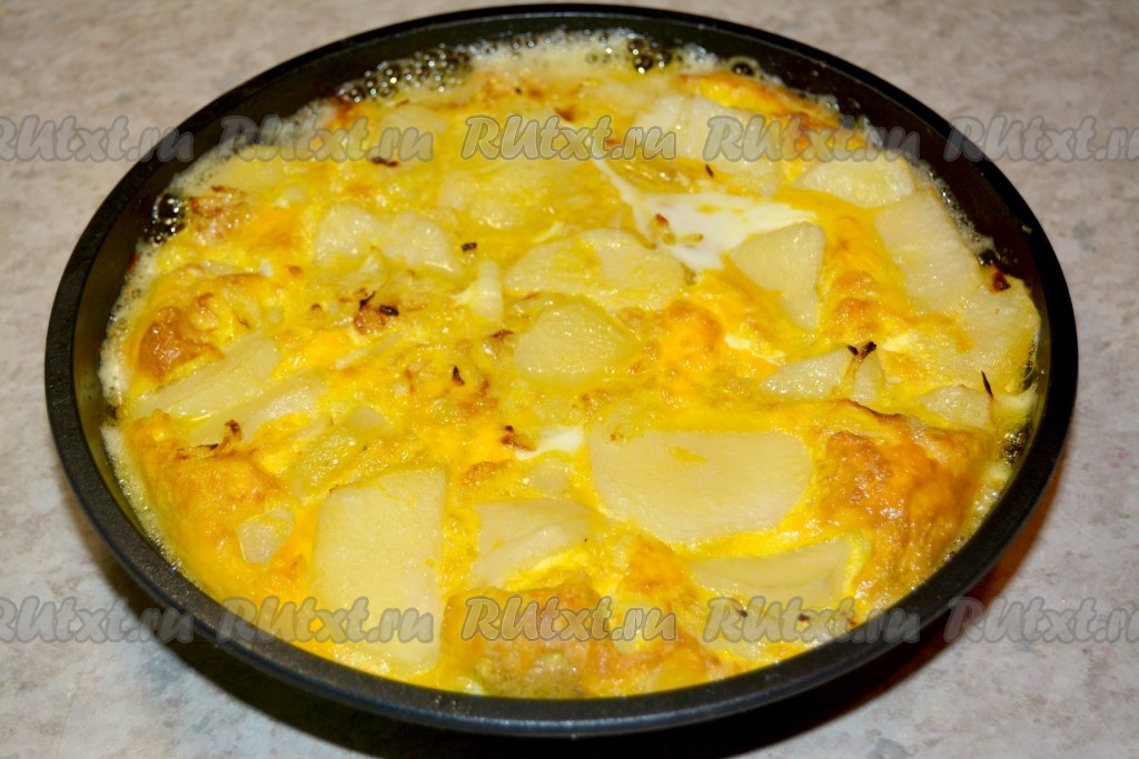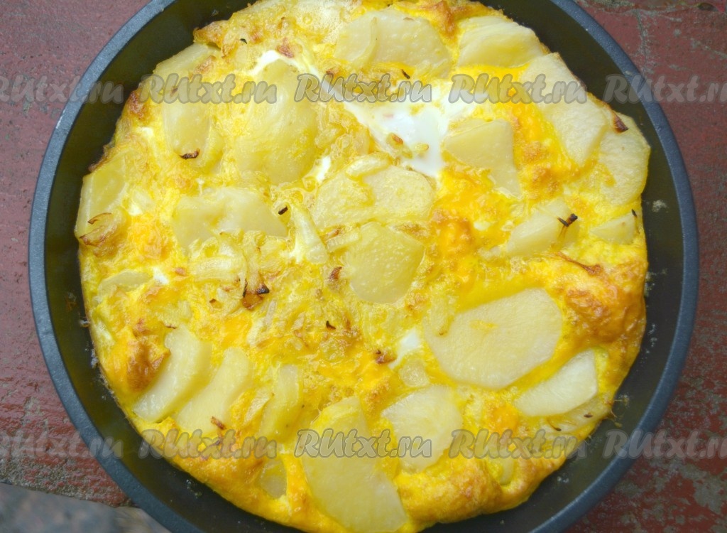 Отправить сковороду с картофельной тортильей в заранее нагретую до 180 градусов духовку на 20 минут.