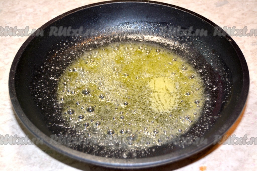 Взять сковороду, в которой будет готовиться картофельная тортилья, и растопить в ней сливочное масло.