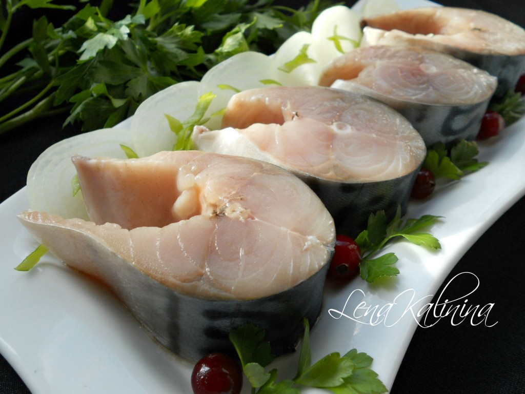 Удалить голову и внутренности, хорошо промыть. Нарезать рыбу острым ножом на кусочки толщиной 2-3 сантиметра.