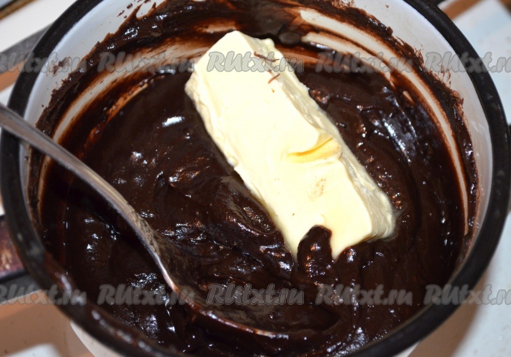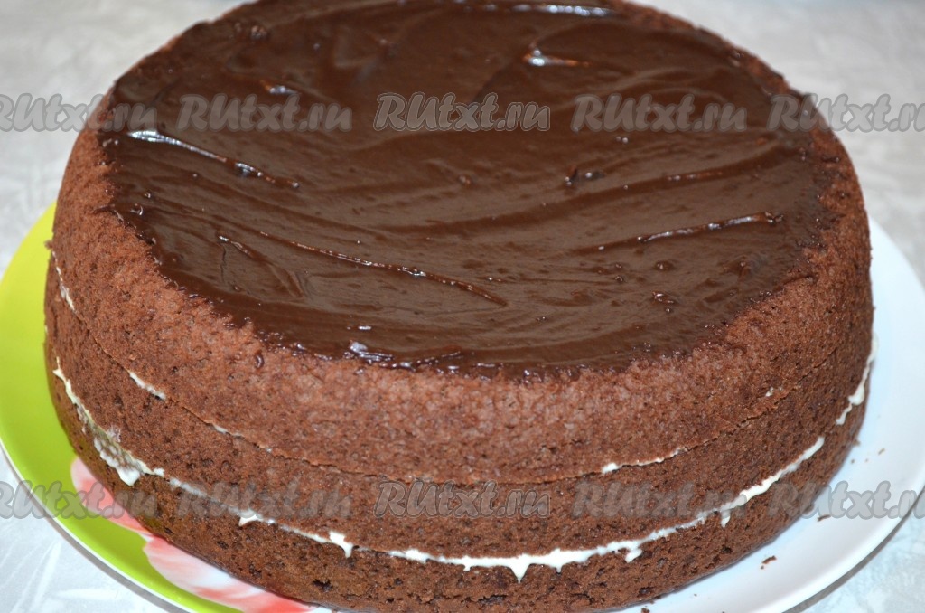 Немного глазури распределить на верхний корж и оставить на 5-7 минут.