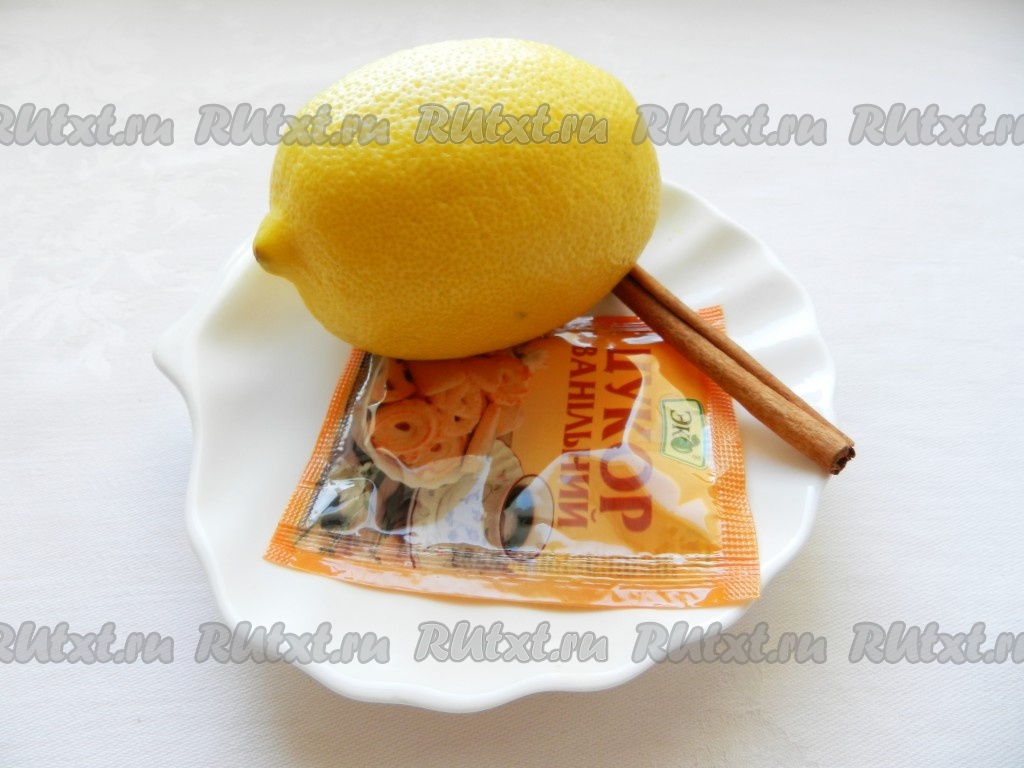 Для этого рецепта варенья понадобятся лимон, ванильный сахар и палочка корицы.
