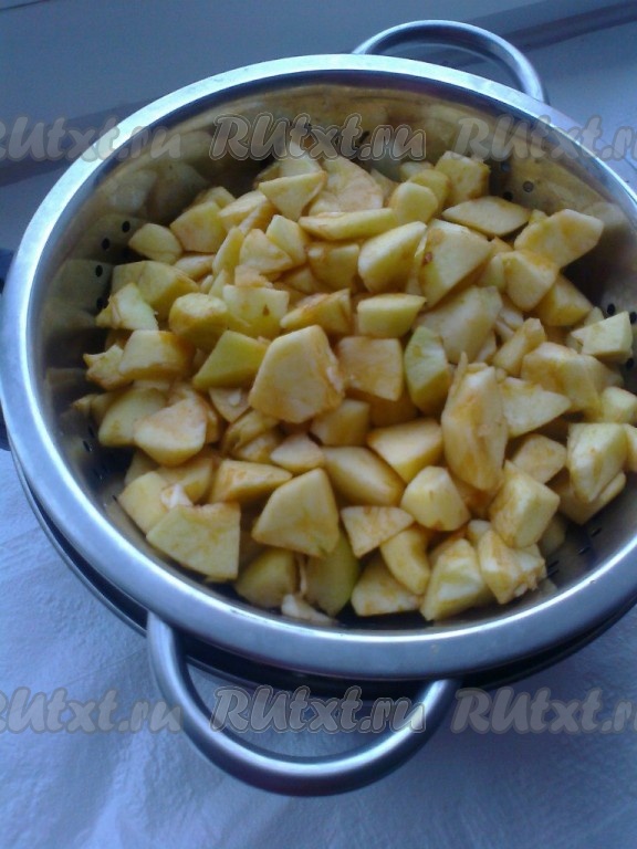 Нарезать очищенные яблоки на небольшие кусочки.
