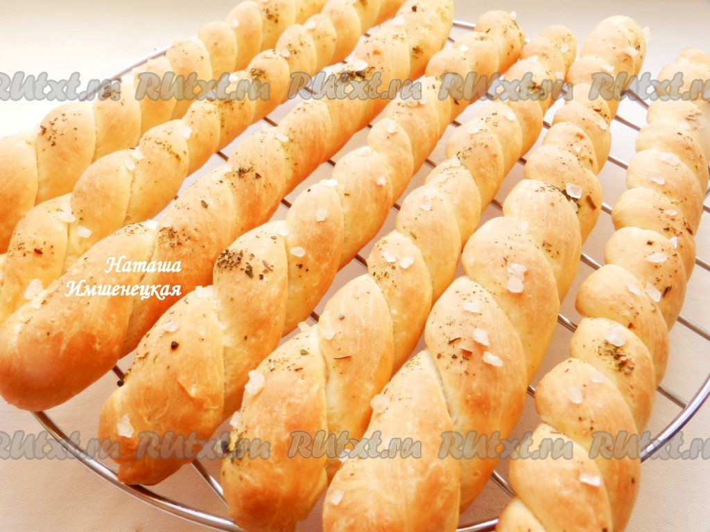 Выпекать хлебные палочки в разогретой до 200 градусов духовке 18-20 минут (до приятного золотистого цвета). Затем переложить с противня на решётку и остудить.
