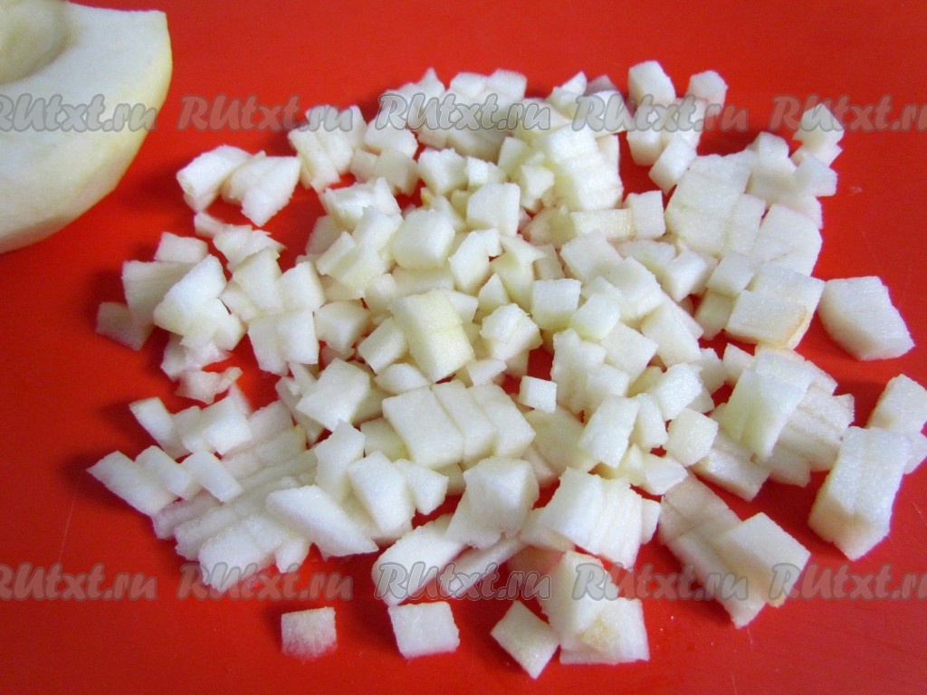 Яблоко очистите от кожуры и сердцевины и нарежьте небольшими кубиками.