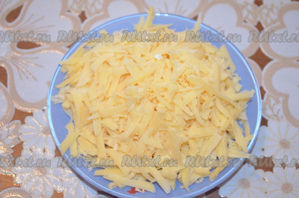 Сыр натереть на крупной тёрке.