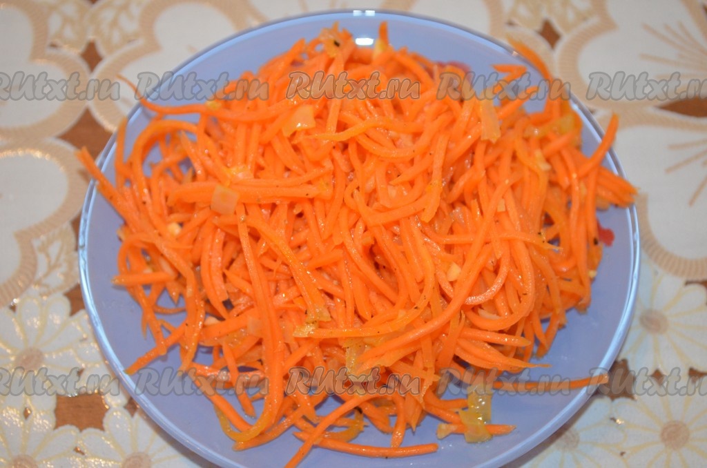 Свеклу заранее отварить в кожуре до готовности (в течение 45-60 минут с момента закипания, готовая свекла будет легко прокалываться ножом), затем остудить и очистить. Морковь по-корейски можно приготовить самим или купить в магазине. Разрезать полоски корейской морковки на 3-4 части, чтобы они не были очень длинными.